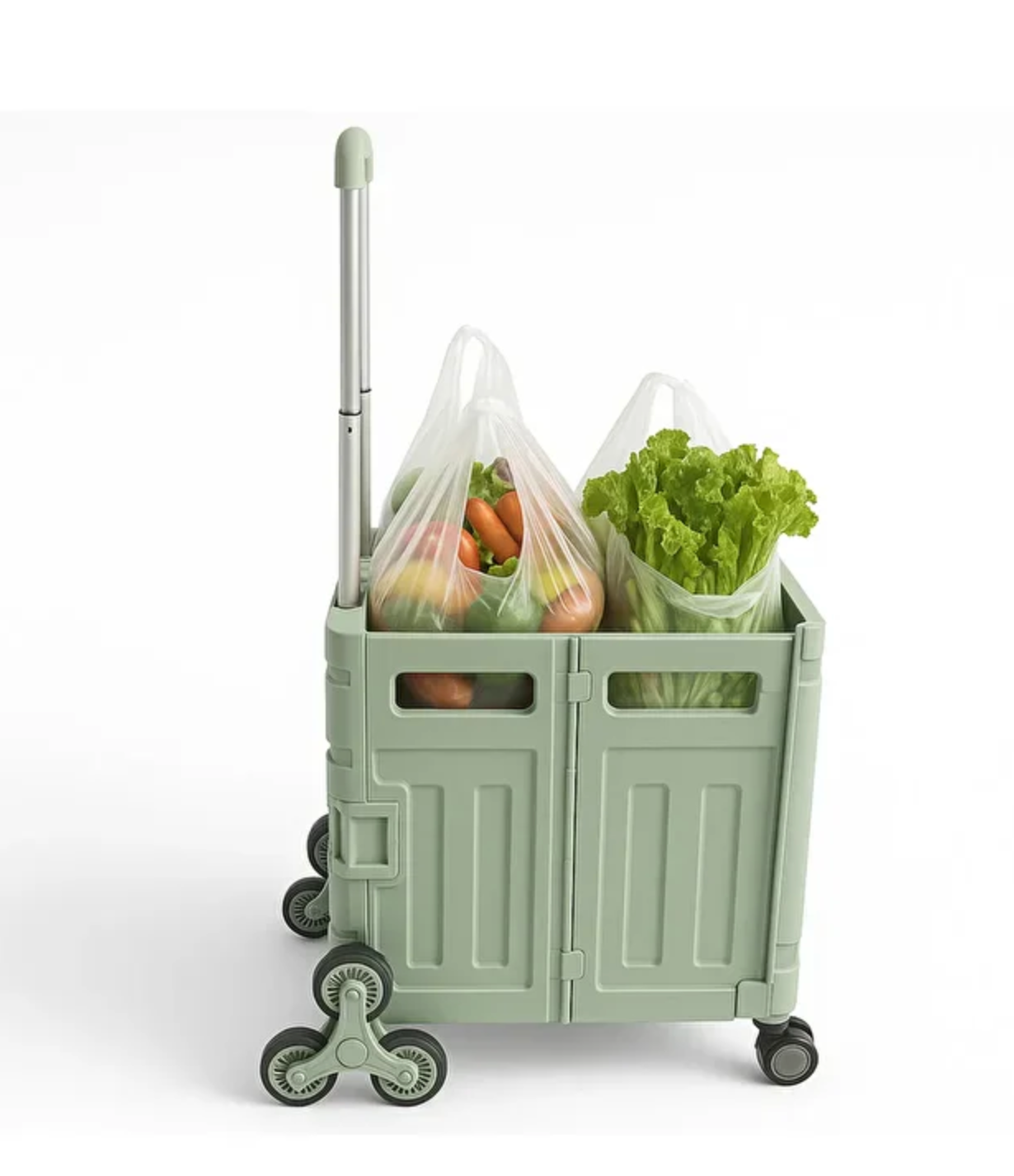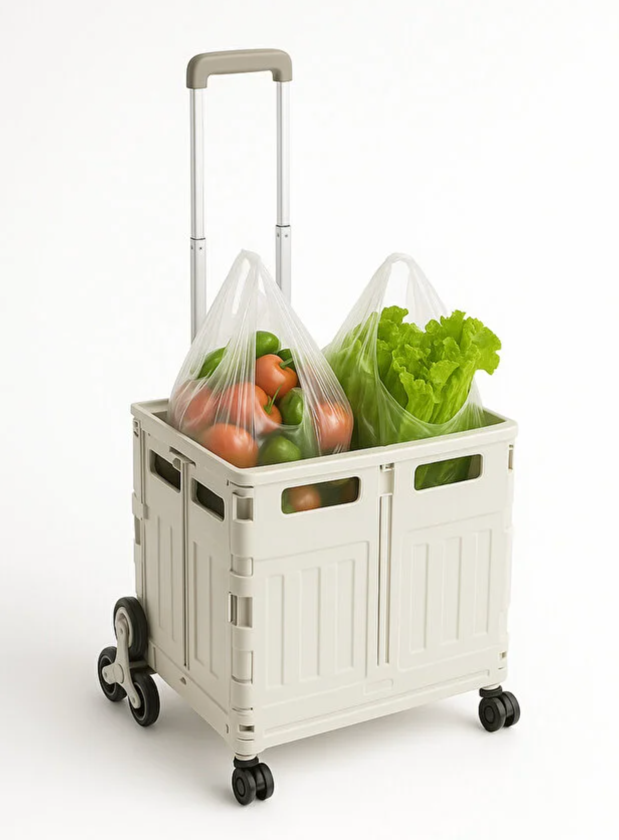 Dieser klappbare Rollwagen ist ein echter Alltagshelfer, der Ihnen das Leben erheblich erleichtert. Dank seiner stabilen Konstruktion und leichtgängigen Rollen transportieren Sie schwere Lasten ohne Anstrengung – sei es beim Einkaufen, im Büro oder unterwegs. Der Wagen lässt sich mühelos zusammenklappen und platzsparend verstauen, sodass er auch in kleinen Wohnungen oder im Kofferraum perfekt Platz findet. Durch sein vielseitiges Design eignet er sich sowohl für den Transport von Lebensmitteln, Getränkekisten und Arbeitsmaterialien als auch für Reisen oder Ausflüge. Mit diesem praktischen Begleiter sparen Sie Zeit, Kraft und unnötigen Stress im Alltag.
